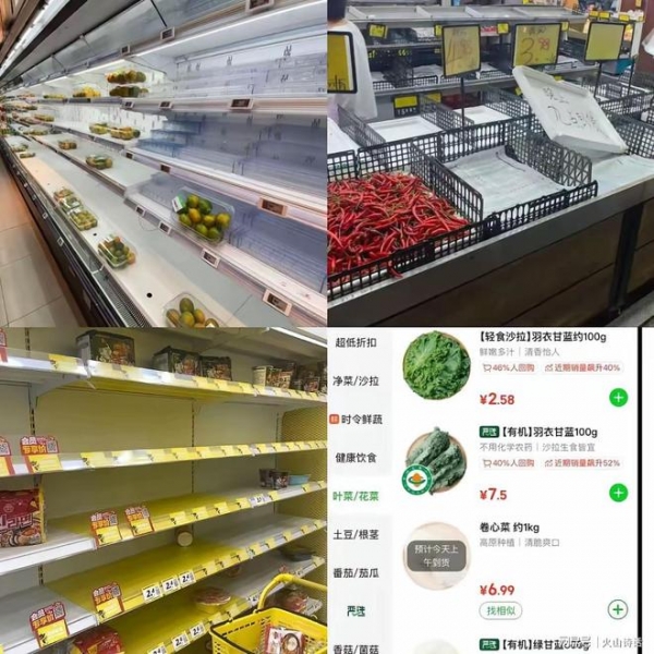 广东人开启"囤货模式",各大商超的蔬菜、水果、干粮被抢得只剩空货架,便利店的面包、矿泉水也卖断货。但有几样商品偏被"剩下"--盒马的榴莲大福、水果店的小橘子、便利店的香辣味泡面、朴朴的木耳菜和羽衣甘蓝,还有超市的小米辣。