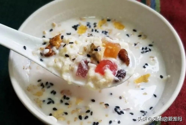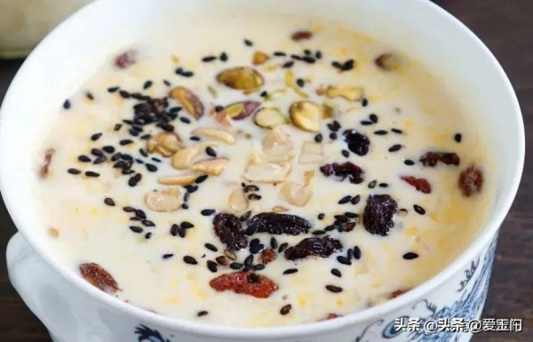 而以牛肉面闻名天下的甘肃兰州,更有一个保留级的美食--牛奶鸡蛋醪糟。这种混合着牛奶,掺入各种坚果的甜品。汤汁雪白,蛋花顺滑,奶香四溢。