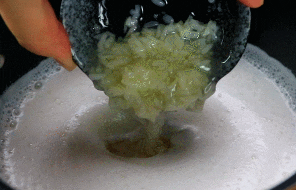 2.加入醪糟,快速搅拌到牛奶煮开。