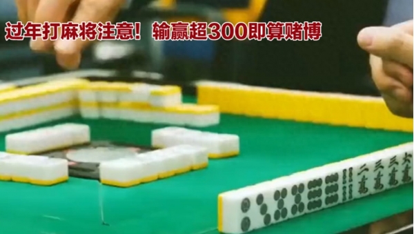 春节将至,亲友相聚围坐一桌打麻将,成了不少家庭的休闲日常,可这份欢乐背后藏着法律红线--近日呼和浩特民警明确回应,过年打麻将并非百无禁忌,一场输赢超300元便会被认定为赌博,切勿让节日娱乐触碰法律底线。