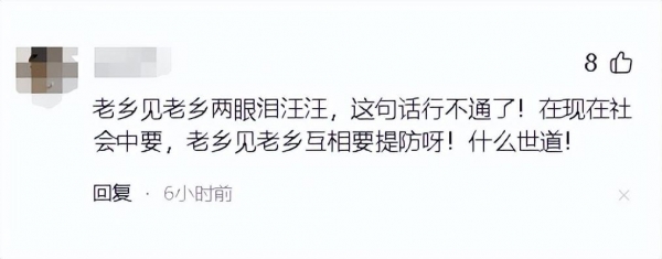 对此,有的网友表示,老乡见老乡两眼泪汪汪,现在不适用了,现在是老乡见老乡处处要提防啊