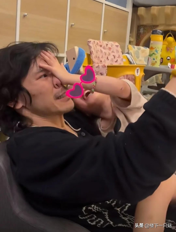 视频里的向佐头发凌乱,胡子也没有刮,看上去有些潦草。女儿被向佐搂在怀里,拿着一本读物在给女儿朗读,听到一半的女儿开始和爸爸向佐玩闹起来,一会儿用手堵住向佐的鼻孔,一会儿用手盖住爸爸的脸。