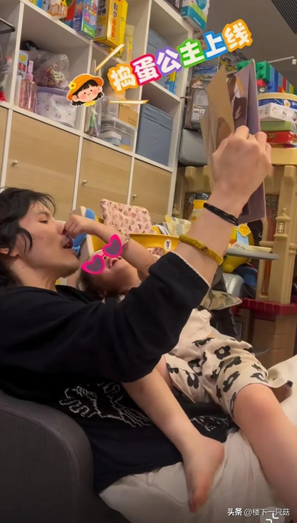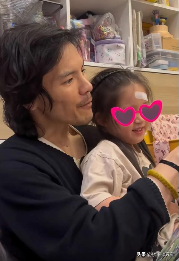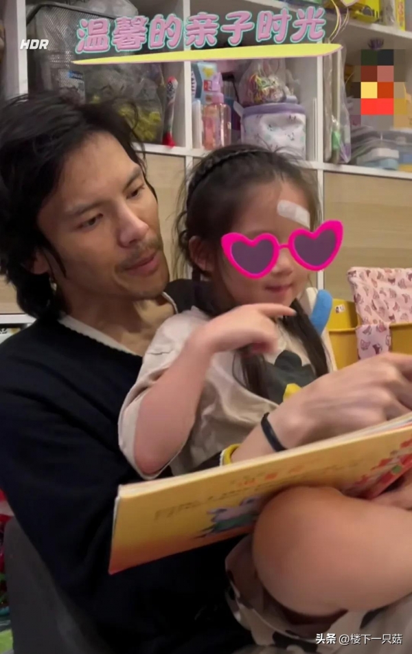 向佐认真的给女儿读书中,女儿和父亲之间打打闹闹,父女互动温情满满。女儿小脸圆鼓鼓的很可爱,额头处贴着创可贴,不知道是不是不小心磕到了,孩子正处于好动的年纪。