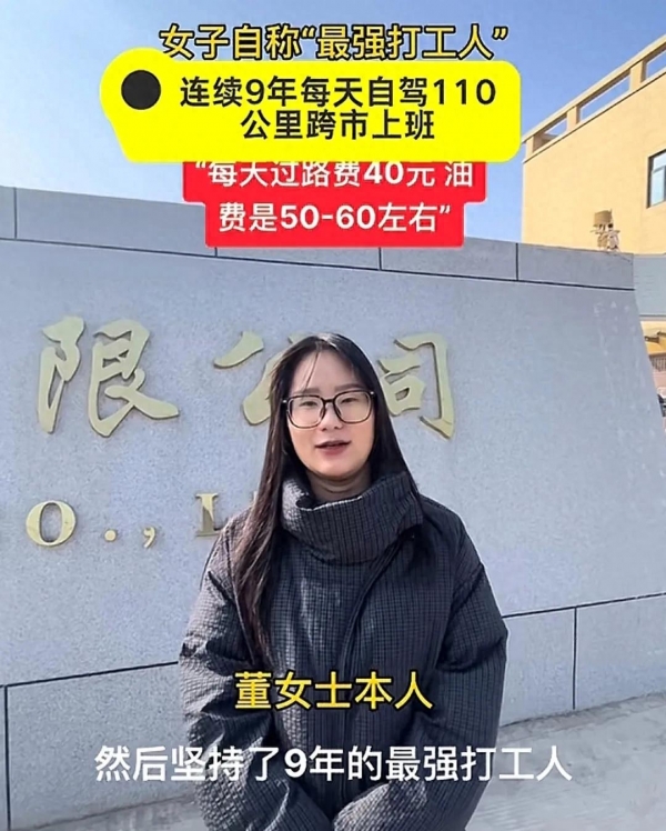 3月7日河南董女士自称"最强打工人"红遍网络。每天自驾110公里跨市上班,往返过路费40元,油费60元左右。究竟是什么特殊工作让她坚持了十年?我们一起往下看。