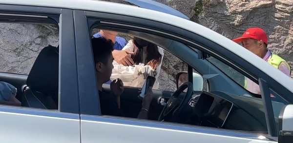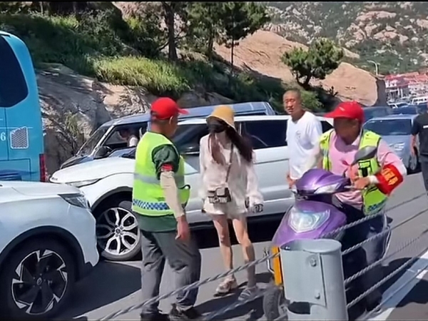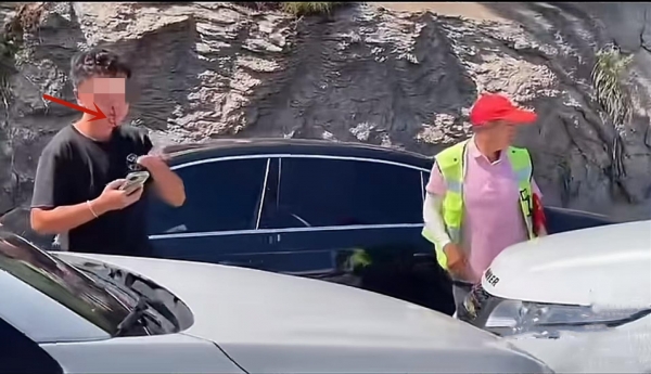 她对着对向的白车骂骂咧咧,现场的执勤人员拦都拦不住,甚至她还用手推执勤人员,以至于执勤人员对着其他人感叹"你看,这闺女!"