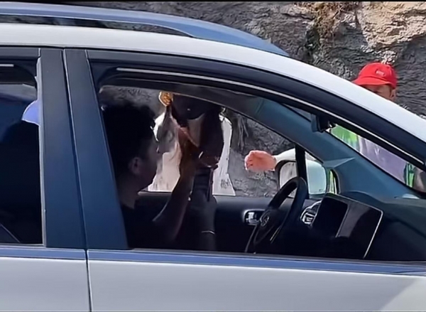 随后,她下车,骂骂咧咧一番后,跑到另一个车门,将手伸进车窗揪男车主的头发。