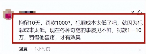 王某有没有后悔我们不知道,我们知道的是大部分网友认为这样的处罚太轻了,认为应该处罚得更严厉一些,才能更好的起到惩戒和警示的作用,网友还表示王某应该赔偿林某某医药费和修车费。