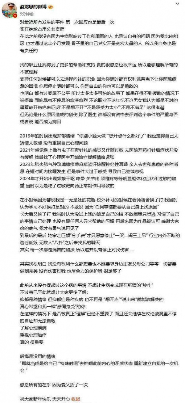 前面不是说过,赵露思解约后,这位女经纪人在朋友圈透露"休养身体",其实就是说自己抑郁了。