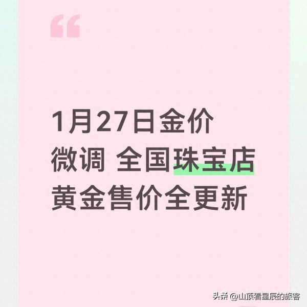 整体来看,1月27日的金价调整,是国际高位下的国内小幅跟涨,全国珠宝店的售价保持了稳中有升的态势,品牌和地区差异依然是消费者选择的重要参考。当下的黄金市场,消费和投资的逻辑截然不同,消费者可关注春节前的优惠活动,投资者则需警惕短期回调风险,理性布局。