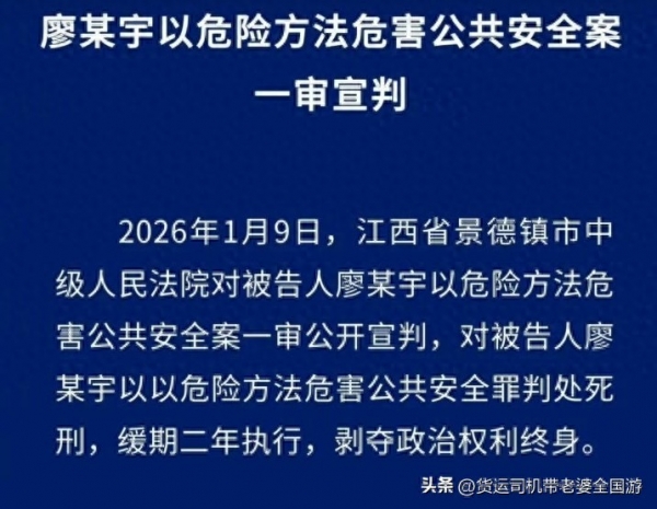 2024年10月2日,与同行女友发生口角的廖某宇驾驶轿车超速行驶,在江西省景德镇市昌江大道珠山人民法院门前路段,以约129km/h的速度撞上正在过马路的一家三口,最终酿成三人全部遇难的惨剧,最小死者距离一周岁生日仅差7天。