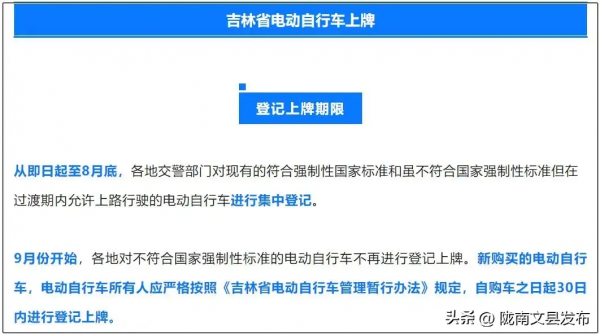 吉林省:6月-8月底开展非标电动自行车集中备案登记,9月交管部门将严查无牌非标车。