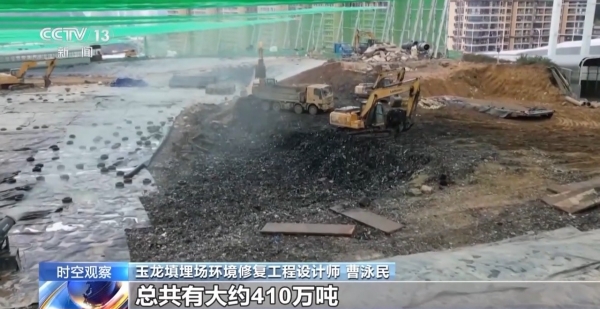 玉龙填埋场环境修复工程设计师 曹泳民:垃圾体积大概250万立方米,总共有大约410万吨,按计划是到2026年9月底全部开挖完成。