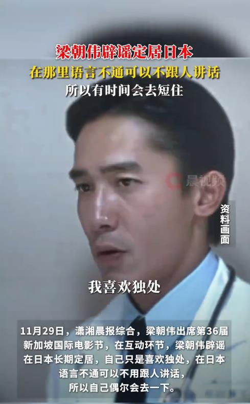 当"梁朝伟定居日本"的传闻在网络上持续发酵后,这位63岁的影帝终于在新加坡国际电影节上给出了明确回应。11月29日,梁朝伟坦言自己从未在日本长期定居,仅是"偶尔去一下",而选择日本的关键理由出乎许多人意料,语言不通可以不用跟人讲话。这番解释犹如一把钥匙,解开了这位国际影星远离喧嚣的内心世界。