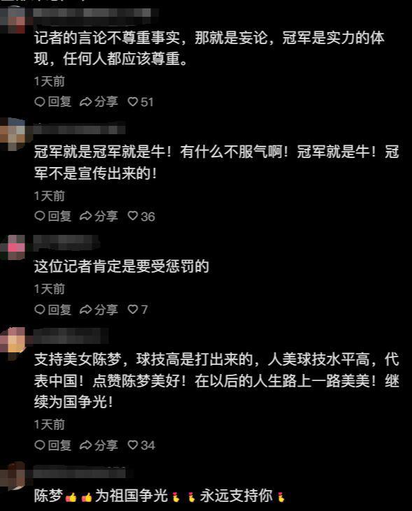 总之,陈梦的冠军荣耀不容置疑。她是国乒的骄傲,是我们学习的榜样。让我们一起为陈梦加油,为所有的运动员加油,期待他们在未来的比赛中创造更多的辉煌。