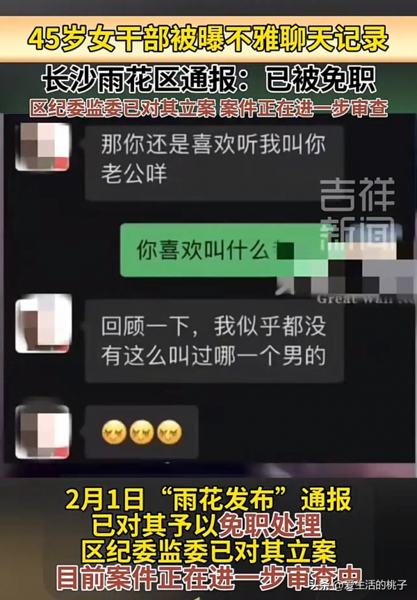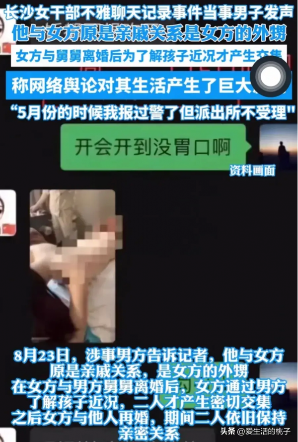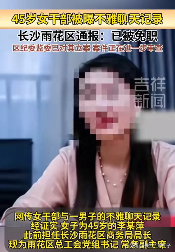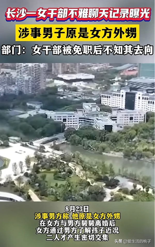 近日,有网友在社交平台上爆出:长沙一女干部李某萍与一男子的不雅聊天记录。涉事男子是该女子前夫的外甥!