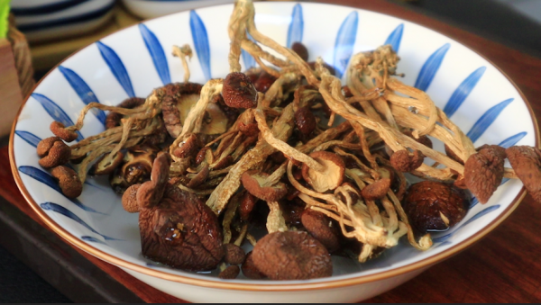 1、首先准备一些干香菇、茶树菇,放入碗中,用清水抓洗干净,茶树菇除了营养丰富之外,口感比较鲜美,煲汤最合适,洗干净后倒入温水泡发30分钟。