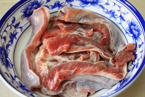 1,肋条用清水浸泡出血水,然后先切成条,再切成小块,切好的驴肉冷水下锅,加入几片姜,一点料酒去腥,大火烧开煮出血沫。驴肉焯好后捞出来,再冲洗一下。