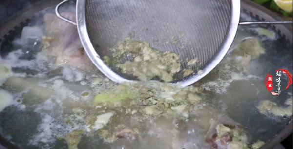 3、煮出血沫之后撇掉,然后大火继续煮,直到汤色开始发白关火捞出,然后用温水冲洗干净、