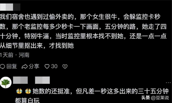 网友的火气,不光冲女生,更因为校园偷外卖太常见。很多学生丢了外卖,找学校没人管,找平台没法赔,只能认栽。
