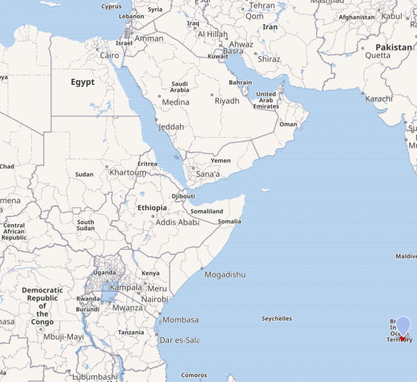 迪戈加西亚岛(图中红点处)距离伊朗约4000公里维基地图
