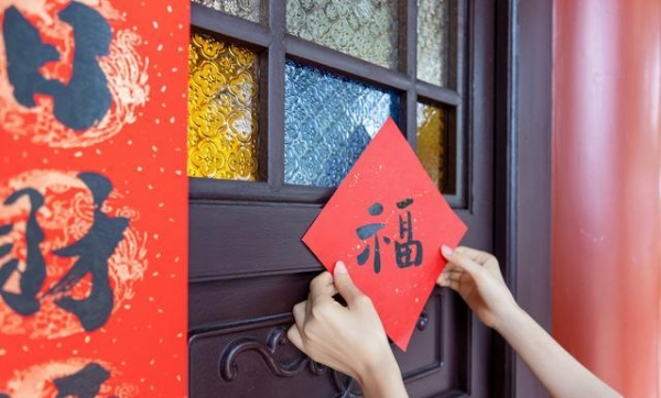 有人爱把"福"字倒贴,大门不建议倒贴,正贴才是迎福入户,缸、柜、粮罐这类容器可倒贴,取"倒"与"到"的谐音。