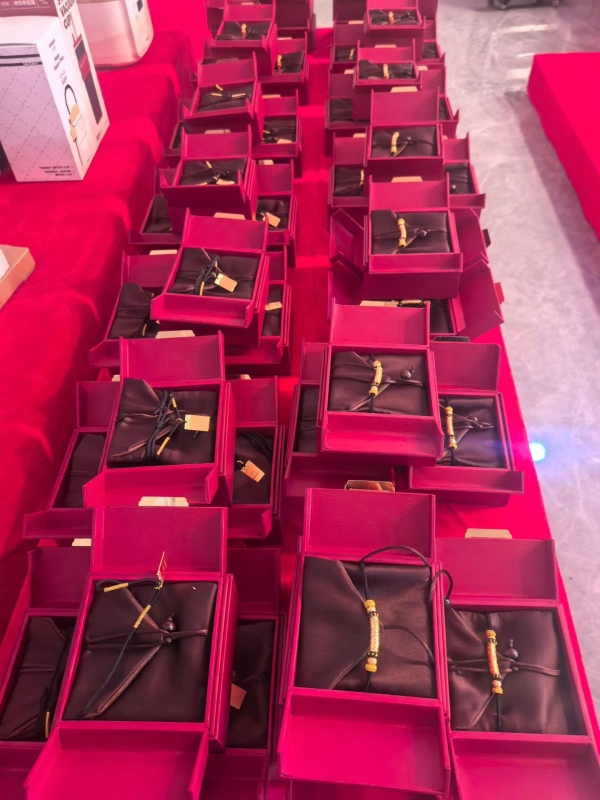 此外,此次年会该公司还为老员工准备了黄金作为福利,入职三年以上的员工可领取黄金3克的手串一份,五年以上的员工可领取黄金5克的无事牌挂坠一份,这份福利不论岗位,"保洁、保安也都有"。