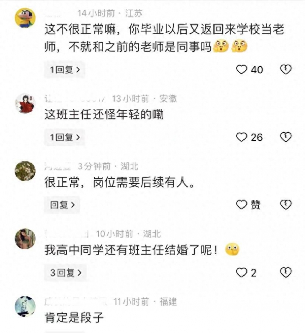 这位网友说,这不很正常嘛,你毕业以后又返回来学校当老师,不就和之前的老师是同事吗?人生就是这么奇妙,谁也无法预料走到哪一步。