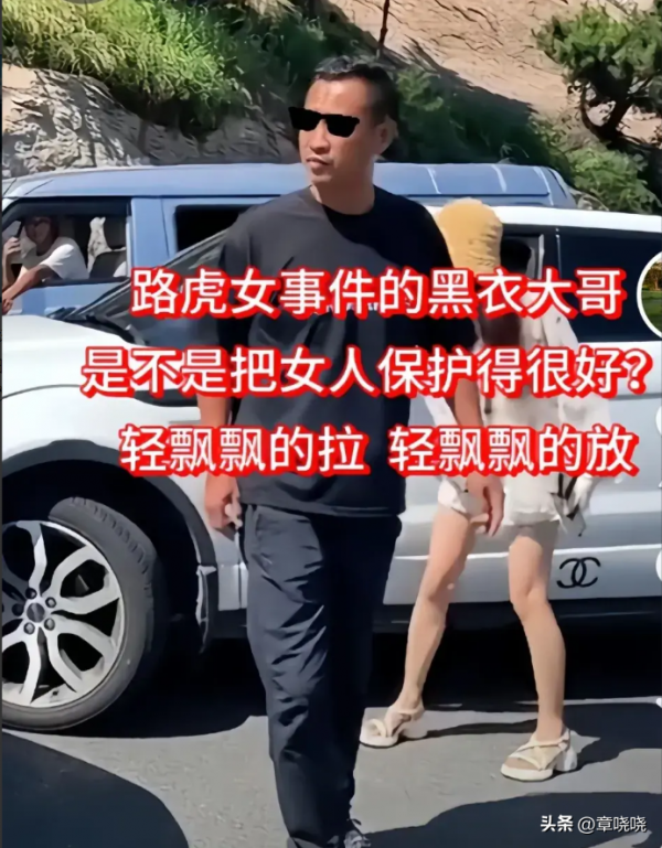 不过,这出好戏可不止路虎女一人表演。视频中还出现了一位神秘的黑衣男子,他全程跟随在路虎女身边,像个"忠诚的保镖"。