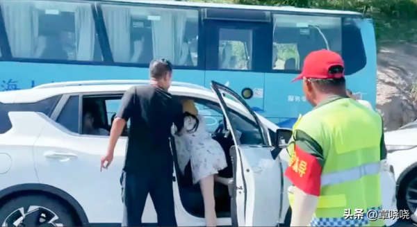 面对路虎女的暴行,这位兄台居然无动于衷,直到她准备溜走时,才替她开路。