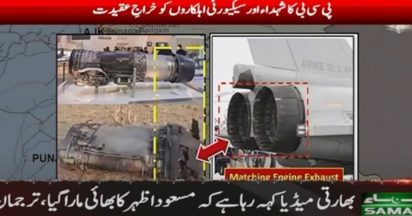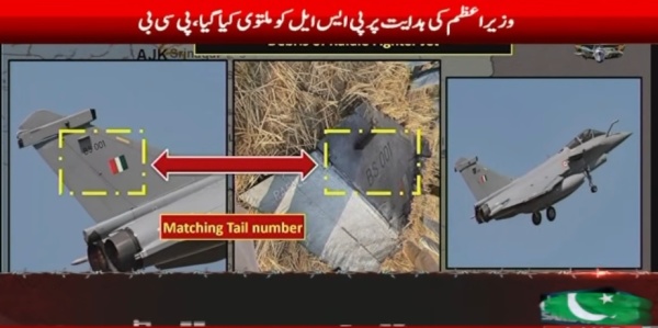 巴军展示并对比了网上流传的飞机残骸和印军"阵风"的对比图像,强调击落战果的可信度。
