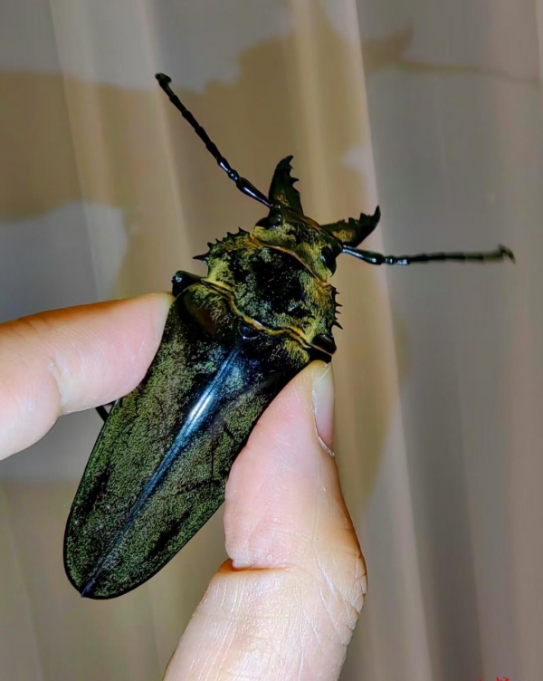 说起名字,这天牛还有点讲究。学名叫威氏王天牛,后半截"wallacei"是纪念个英国老外--华莱士。这人跟达尔文一块提出过进化论,当年在东南亚搞昆虫研究,应该也是见过这种大家伙。现在云南这边算是他提过的物种分布北界了。