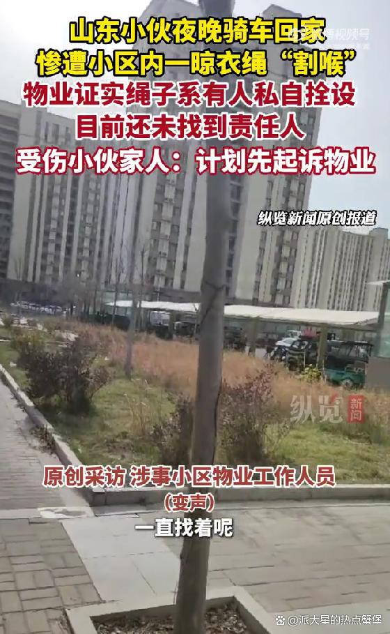 事发后,刘女士联系了物业并报警。物业承认,小区公共区域确实禁止私拉晾衣绳,他们也贴过通知、做过巡查,但"住户多、管理难",常常是前脚清理后脚又有人拴上。更重要的是,事发区域是监控盲区,至今没找到拴绳的人。物业表示正在全力排查,并在业主群征集线索。