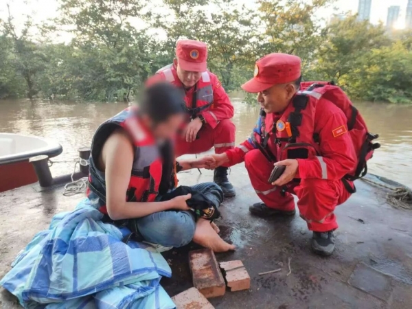 10月10日上午7时左右, 中国安能救援人员在距离南宁北大桥上游一公里处邕江江面执行抢险任务时,发现一名落水市民抱着浮木漂浮在江面,迅速利用冲锋舟将其救起并转移至安全地带。