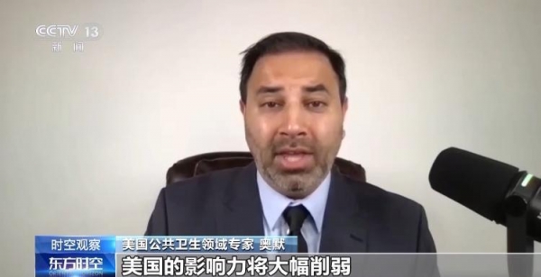 美国公共卫生领域专家 奥默:美国的影响力将大幅削弱,其他国家也将不再把美国视为全球公共卫生领域的重要力量,全球卫生治理并不会因为美国退出世卫组织而停止运转,但美国的影响力却会随之终止。