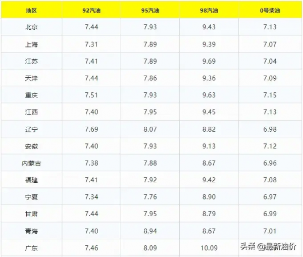 今天92号汽油,95,98汽油与0号柴油报价