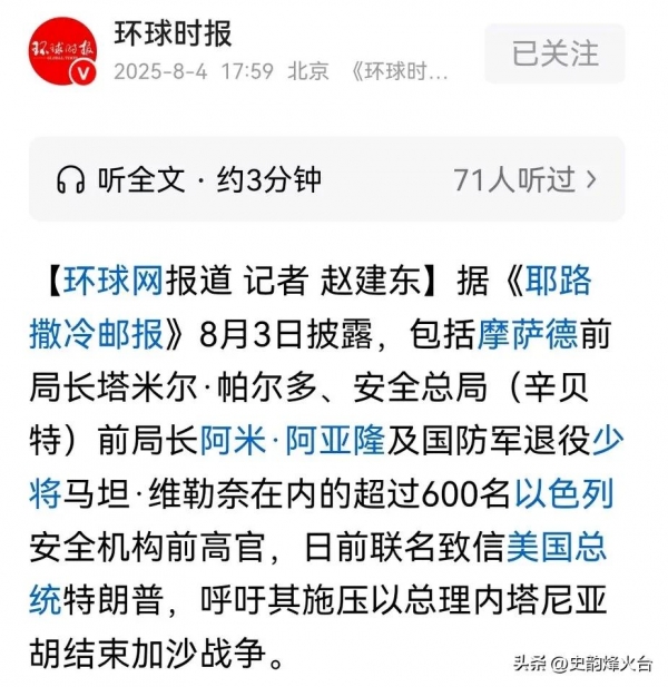 这封凝聚了以色列安全精英数十年经验与良知的长信,价值远超普通的反战呼吁。