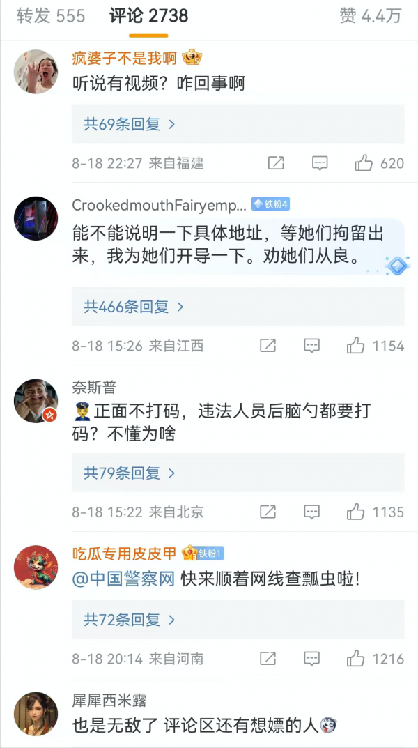 "能不能说明一下具体地址,等他们拘留出来,我为她们开导一下,劝他们从良",这个网友还真逗,存心不良呀!