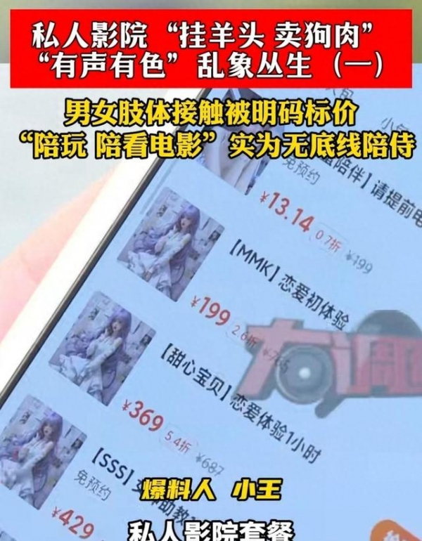原来他们都是先在网上和客户聊,给意向客户各种暗示,说可以提供涉黄服务,最终以几百元的低价谈成交易,让消费者来到影院里完成交易。