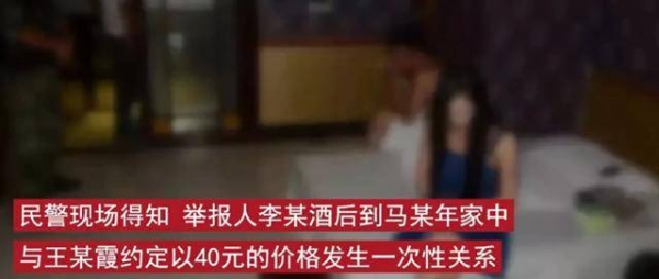 事件的主人公李某在10月7日晚酒后前往另一位主人公马某家中,而李某前往马某住处的目的竟然是嫖娼。根据李某的讲述,自己当时在马某家中与一女子王某霞约定,以40元一次的价格发生一次性关系。