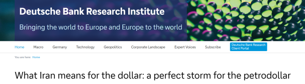 当地时间3月24日,德意志银行在一份题为《伊朗对美元意味着什么:"石油美元"遭遇完美风暴》的报告中如此写道。