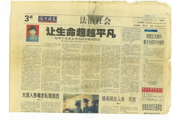 而那位见义勇为的刘铭富,因挺身而出阻止悲剧,被云南省政府追授为"见义勇为先进个人"。