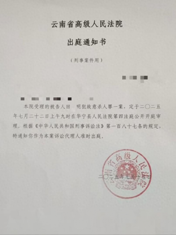 2025年10月28日,云南省高级人民法院宣布,对原审被告人田永明故意杀人案启动再审程序。