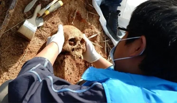 枯井位于襄城县库庄镇中冀村。据了解,2010年,当地学者就发现了枯井埋葬士兵遗骸的线索,直到2024年,襄城当地志愿者联系到湖南省龙越和平公益发展中心的英魂回家项目组,经过前期调研走访确认,今年2月26日,遗骸发掘工作正式启动。发掘团队克服重重困难,下挖4米多,才看到井壁,顺着往下挖,最终发现了遗骸。遗骸层共有6米多深,里面的景象令人痛心,骸骨叠加两米多深,有的遗骸头骨上有弹孔,疑似是伤兵。除了遗骸,现场还发现了未发射的子弹、皮带扣、纽扣、花露水等物品。