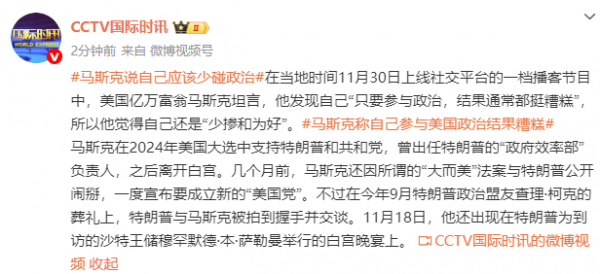 马斯克在2024年美国大选中支持特朗普和共和党,曾出任特朗普的"政府效率部"负责人,之后离开白宫。几个月前,马斯克还因所谓的"大而美"法案与特朗普公开闹掰,一度宣布要成立新的"美国党"。不过在今年9月特朗普政治盟友查理·柯克的葬礼上,特朗普与马斯克被拍到握手并交谈。11月18日,他还出现在特朗普为到访的沙特王储穆罕默德·本·萨勒曼举行的白宫晚宴上。
