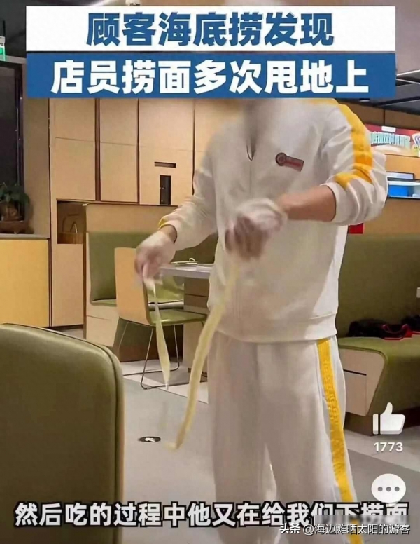 一位顾客在昆明海底捞用餐时,没有留意现场的甩面表演,回家后翻看朋友拍的视频,发现面条多次掉在地上,这位顾客第二天返回店里向值班经理反映情况,对方只赔偿了一根面条作为表示,顾客认为处理方式不够妥当,便将视频上传到网络,结果迅速登上热搜榜首。