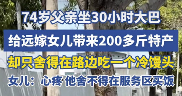 父母的爱,从来都不张扬,却重得让人承受不起。74岁的老父亲,坐30小时大巴,带200斤特产,啃一个馒头,藏的全是对远嫁女儿最深沉的牵挂,看一次,哭一次。