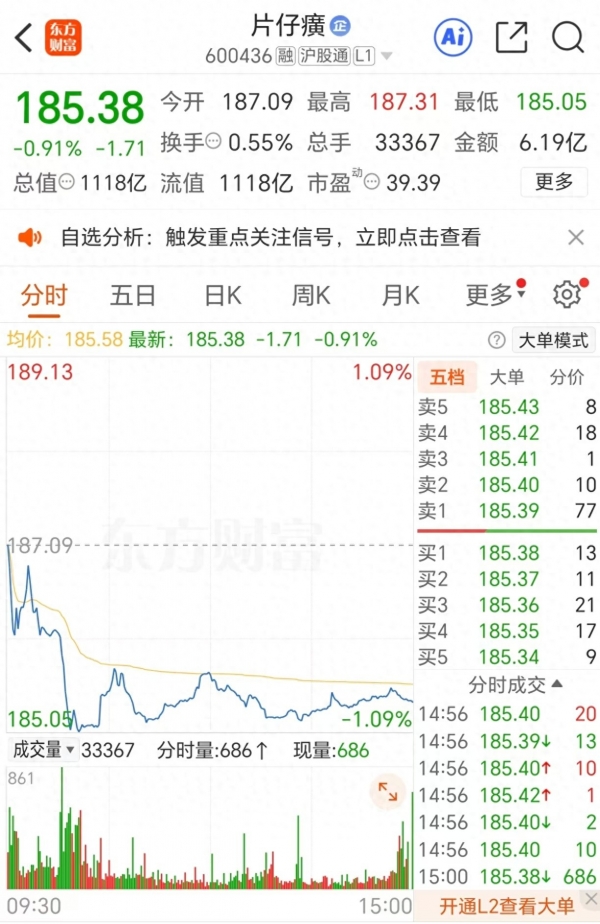 在A股市场"万物皆可茅"的时代享有"药中茅台"美誉的片仔癀,市值曾一度突破2900亿元,而如今,其1118亿的总市值,已较高点蒸发近1800亿元。