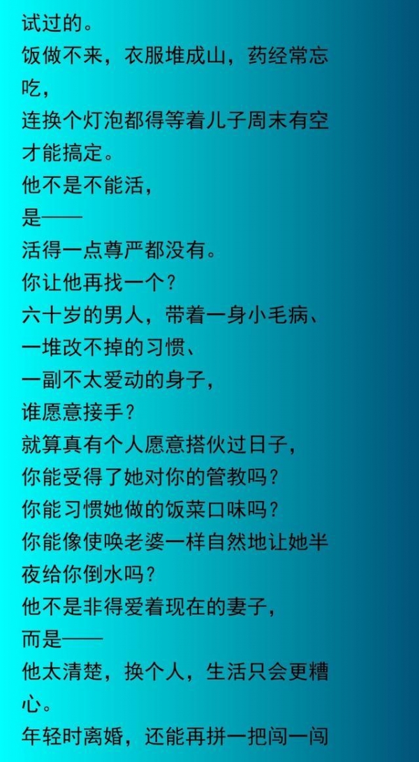 日常的提醒被当成唠叨,健康上的拉扯被当成干涉,钱和孩子的安排被当成多事,这些误读堆积出了一种误判:以为婚姻是随时能换的关系。