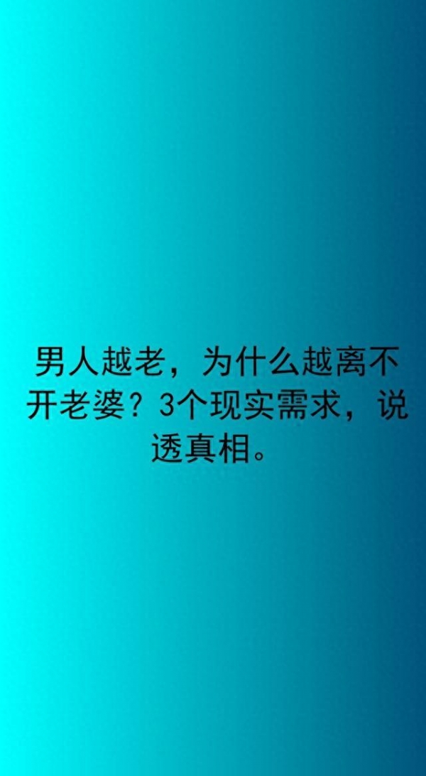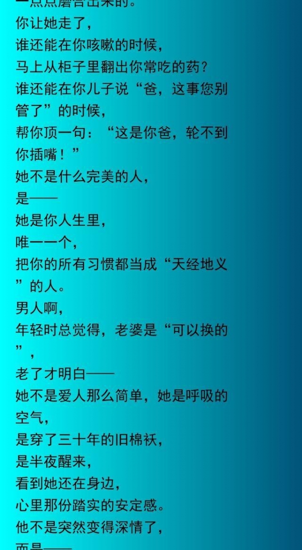 中年男人到了五十岁左右,很多人开始真正明白一句话:老婆不是简单的爱人,是命根子。