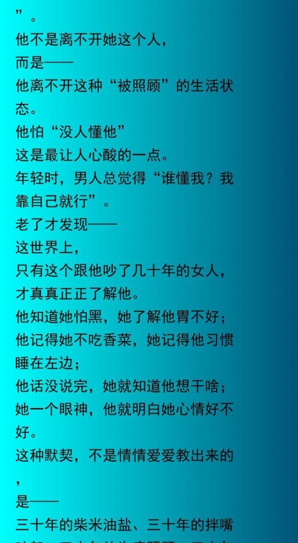 懂你的习惯,知道你的脾气,能接住你的话,这些叠加起来,不是浪漫起伏,而是晚年的平顺。